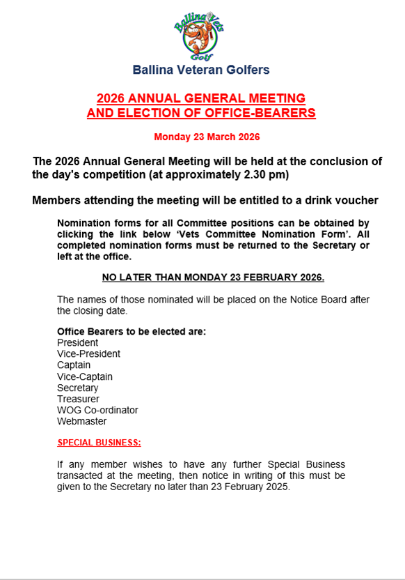 Please Support our Sponsors! These prizes are awarded by a lucky draw each Monday to Ballina Vets that played on the day.